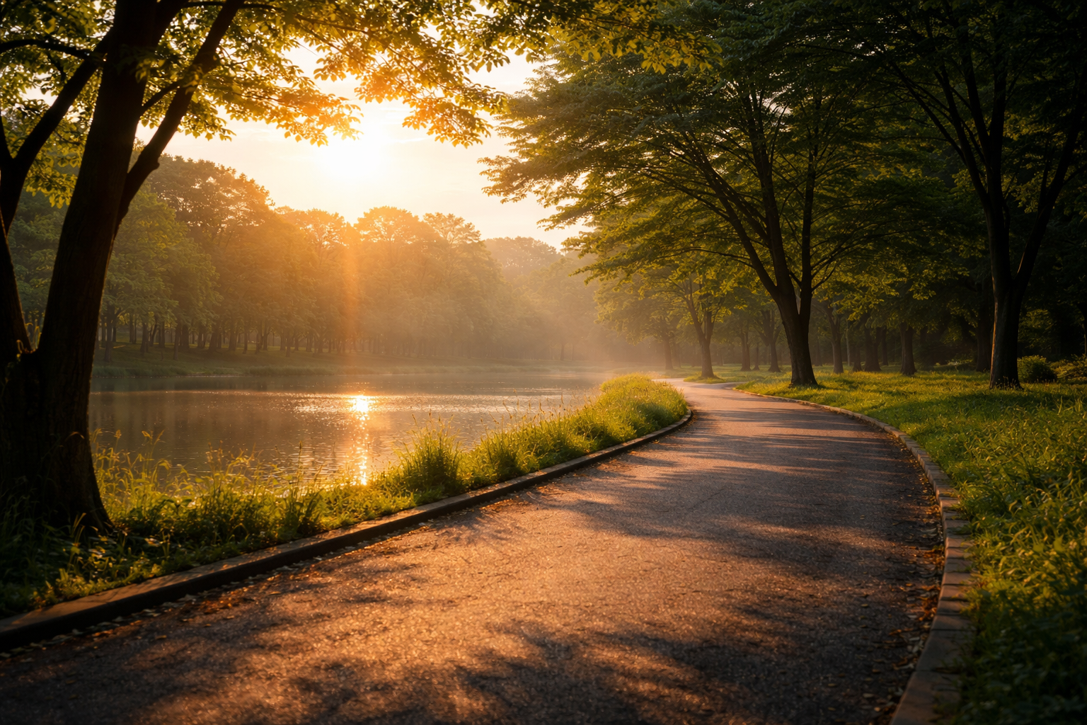 この公園はとても大きく、真ん中に大きな池が貯められており、その池を囲むように道が舗装されている。